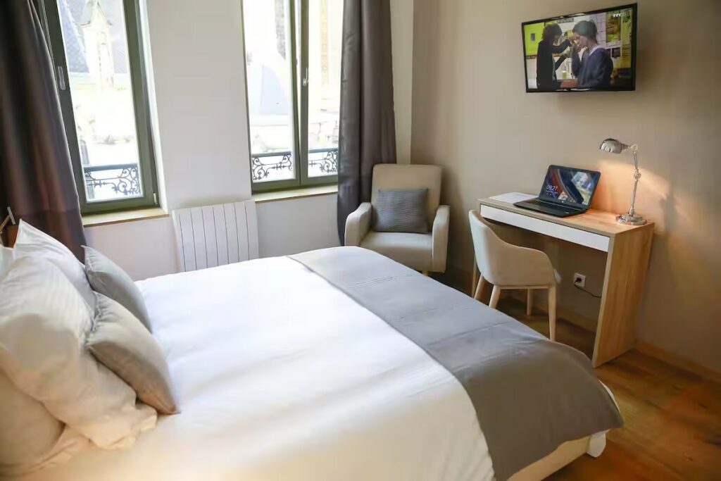Chambre 2 : Un second lit « Queen Size » (160×200), une armoire et un espace bureau, parfait pour le tĂ©lĂ©travail ou organiser ses visites.