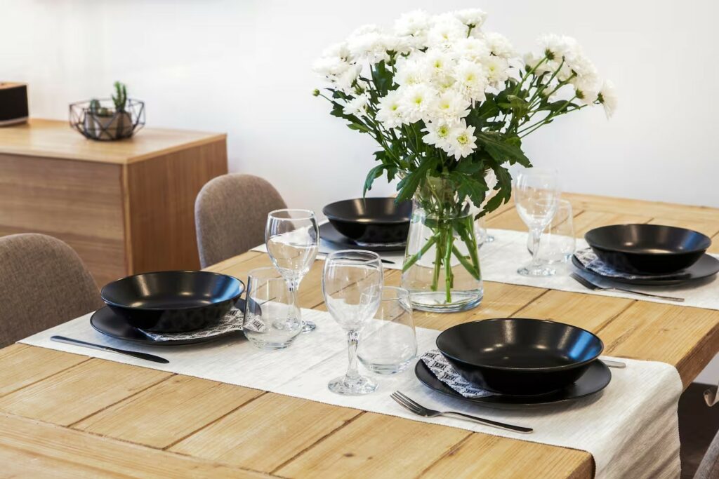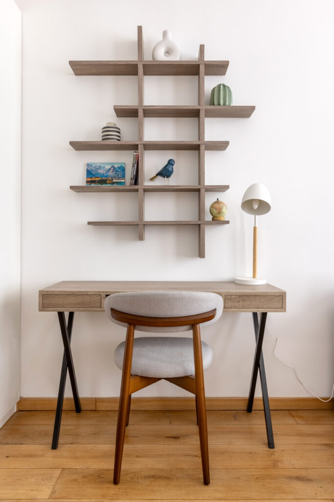 • Un espace dînatoire : une table conviviale accompagnée de 4 chaises, parfaite pour partager un repas ou travailler au calme.