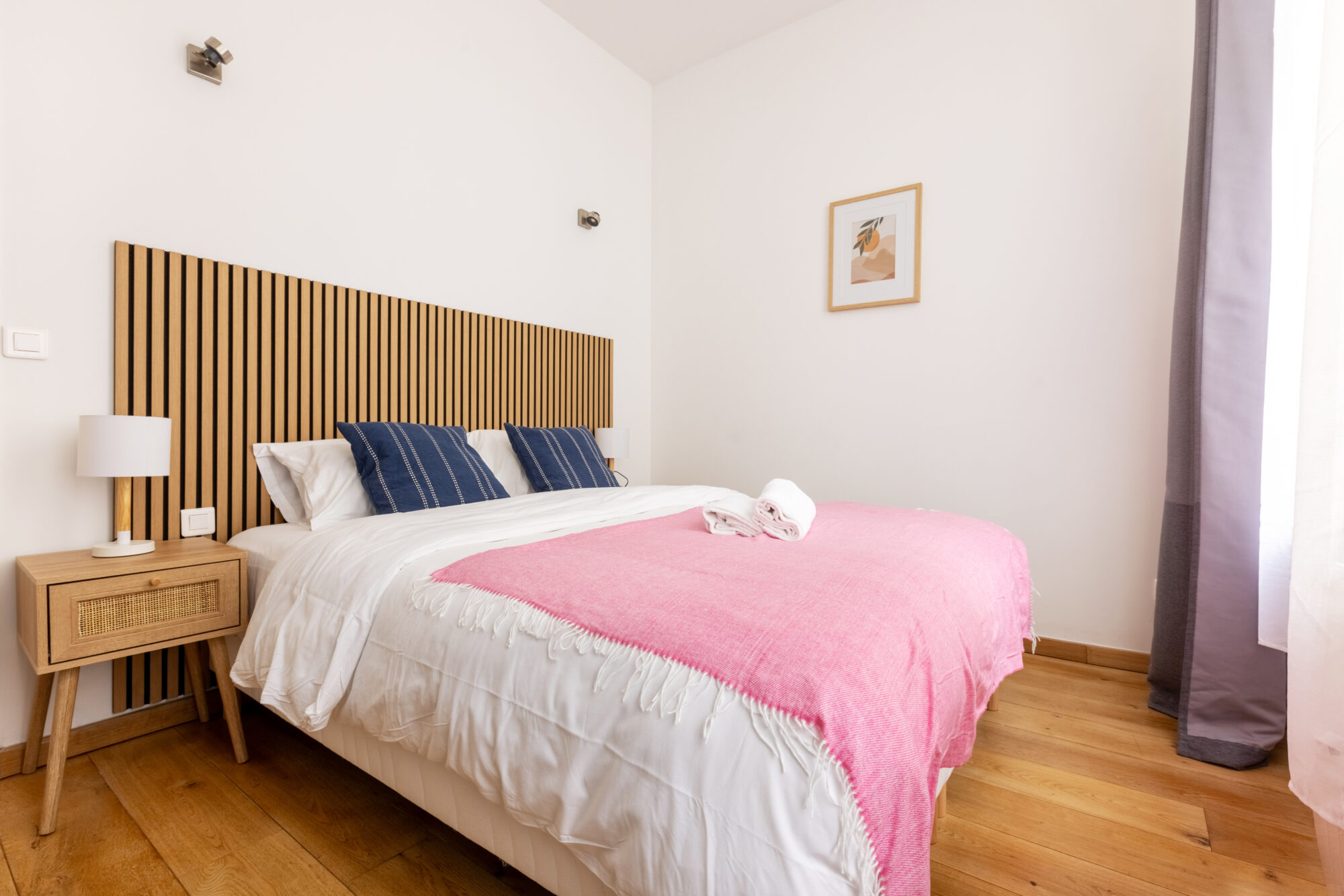 La chambre, séparée de la pièce principale, est pensée pour votre repos :