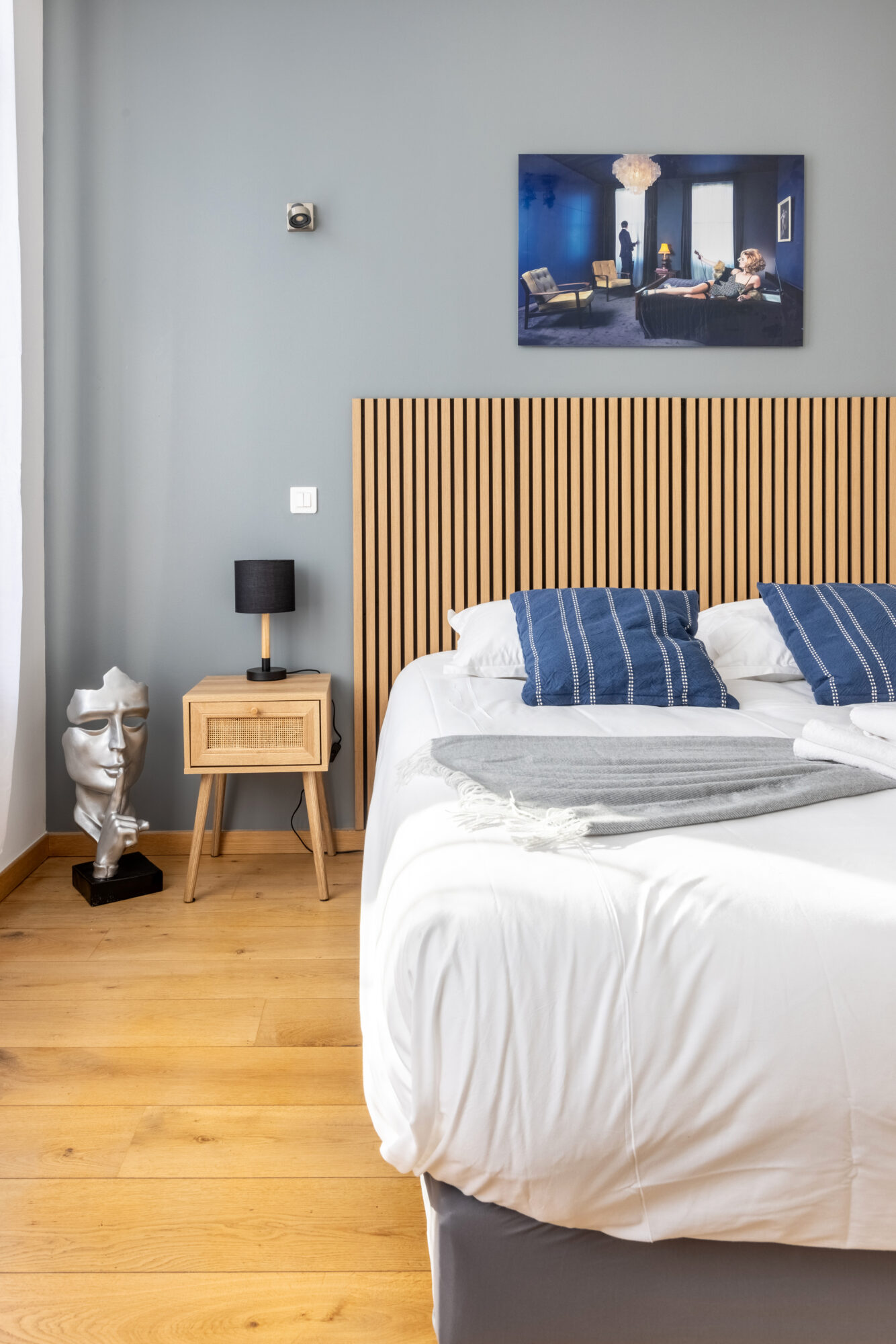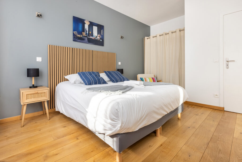 - Nuit : Chambre cosy avec lit Queen Size (160×200).
