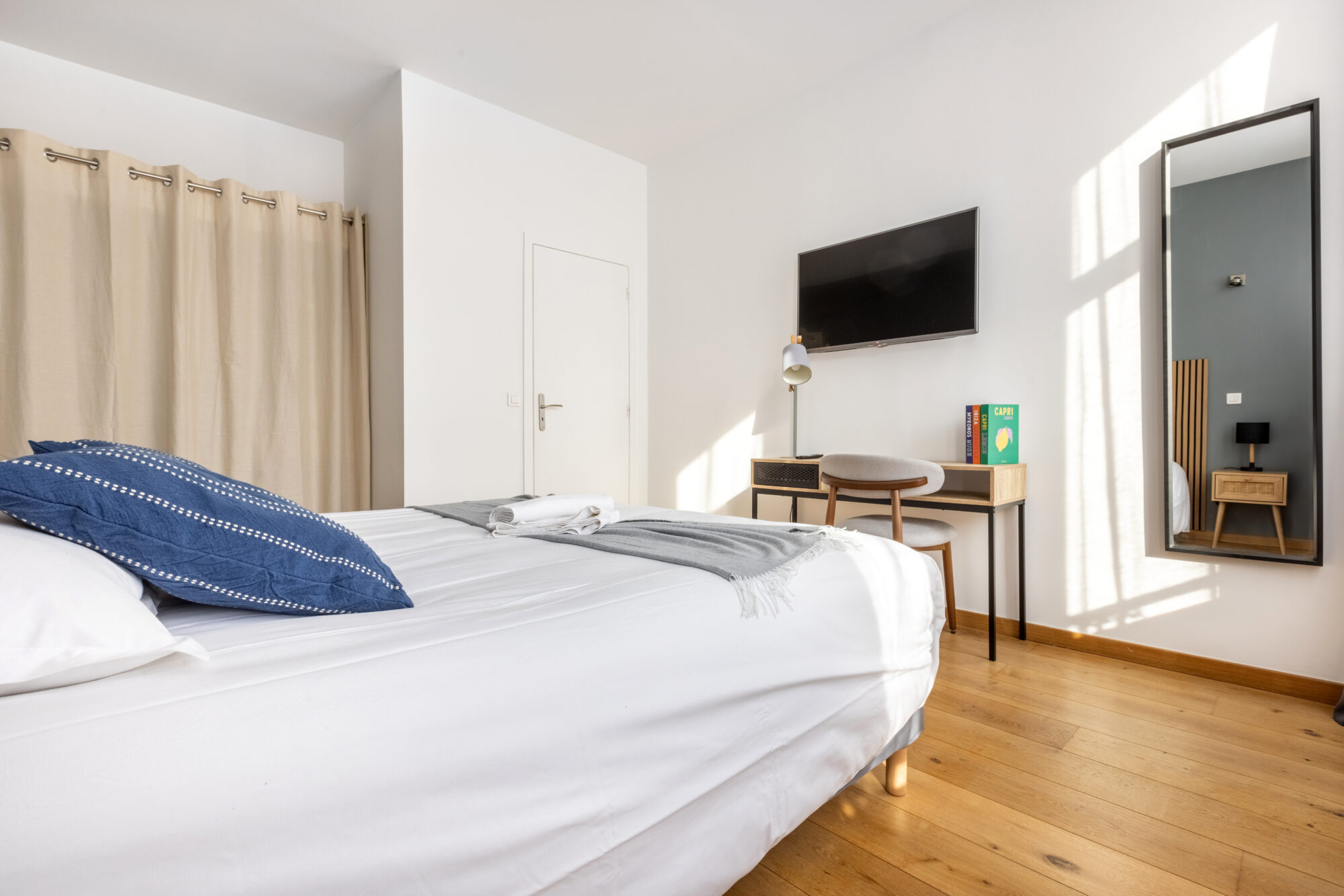 Au 3e étage, profitez d’un T2 d’exception. Plus spacieux qu’un appartement classique, il offre un confort haut de gamme pour 4 personnes.