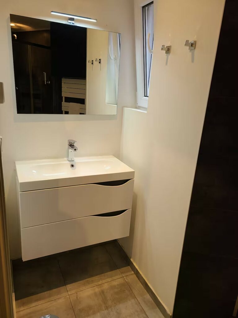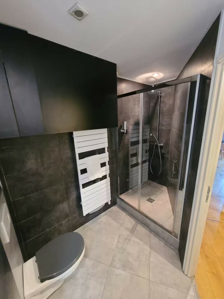 • Confort : Salle de bain design, machine à laver et rangements.